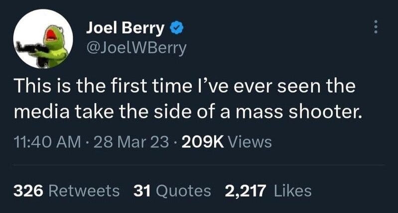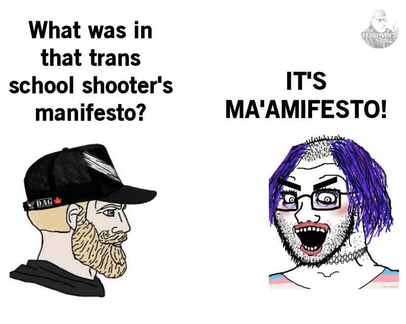 First time the media takes the shooter's side, its ma'amifesto (not manifesto), saying the quiet part out loud, seeing patterns, saying the quiet part out loud and more trans mass shooter memes!