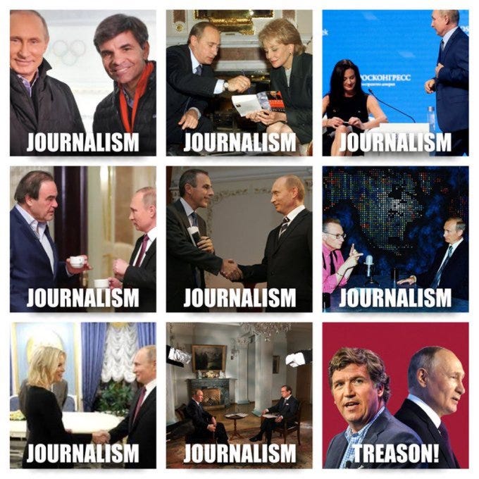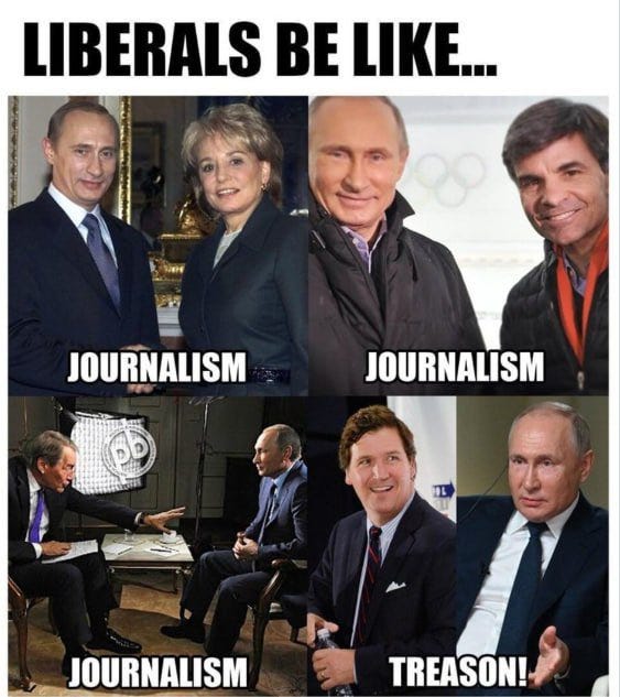 Fake news "journalists" are confused about not doing propaganda, remembering when FOX fired him and more Tucker Carlson Memes as he does journalism & interviews Putin!