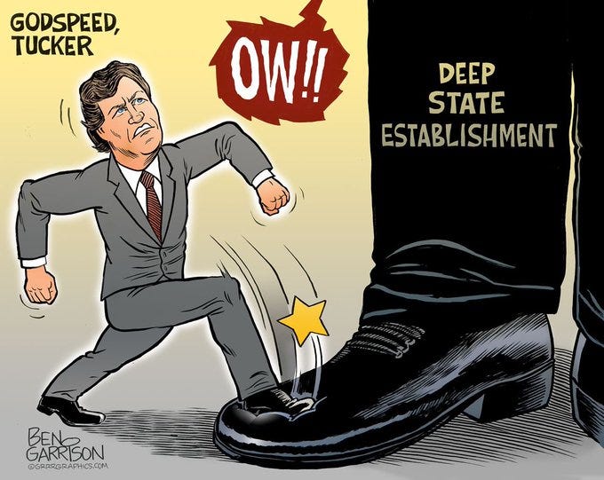 this is the time where all journalists should stand up and stand with Tucker. If there are no more govt slaves in the news business, this whole charade is over. but like with the jabs, most people are dead scared of losing their jobs. So was I, but we made it through the 3 years before I could retire ! If we could,, everyone can.