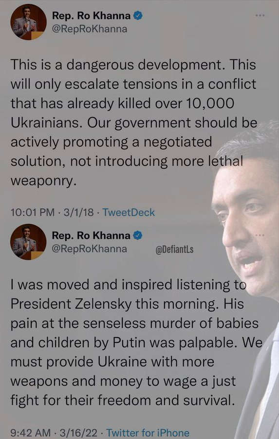 The quote from Ro Khanna reminds me of the story we got during the Kuwait invasion when they told us the Iraqis were taking babies from incubators. He is invoking the "save the babies and children" tag line (along with some hypocrisy).