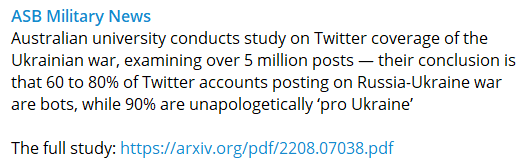 The study: https://arxiv.org/pdf/2208.07038.pdf (Telegram is MUCH BETTER source for more reliable info on the war]: