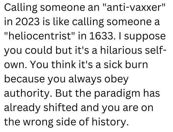 Some really excellent memes there. I remember Trump calling the vax his "big beautiful shot" and telling his rally goers to get it. When they started booing him for saying that, he stopped talking about them. Kennedy never claims to be an anti-vaxxer. He says he just wants them to be safe and there is no way that can ever happen. By design, they are toxic to the human body. It seems Biden's supporters conveniently have amnesia about his mandates or are just so cultishly stupid they don't mind that his mandates killed millions of their fellow citizens.