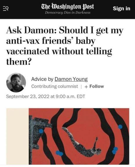 How far will vaccine psychos go (Ask Damon: Should I get my anti-vax friends’ baby vaccinated without telling them? plus it was posted on MSN with more comments):