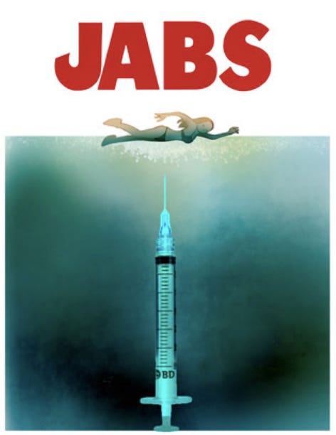 Jabs as the new Jaws, faces of the vaccine cult, how far will vaccine psychos go, EV inspired vaccine model, let's do it again and again, who the real Fascists and more vaccine logic memes!
