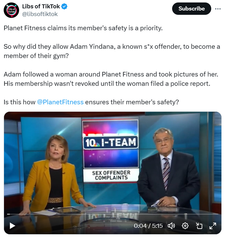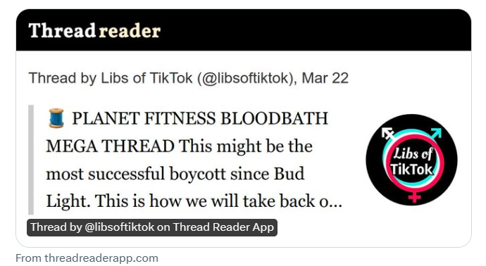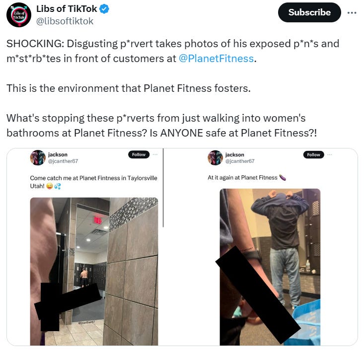 Libs of TikTok has a good thread covering the Planet Fitness bloodbath: