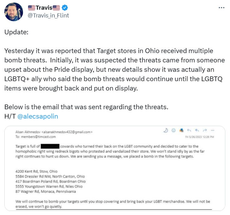 The media was caught lying again (Link: https://twitter.com/Travis_in_Flint/status/1662493555313524737):