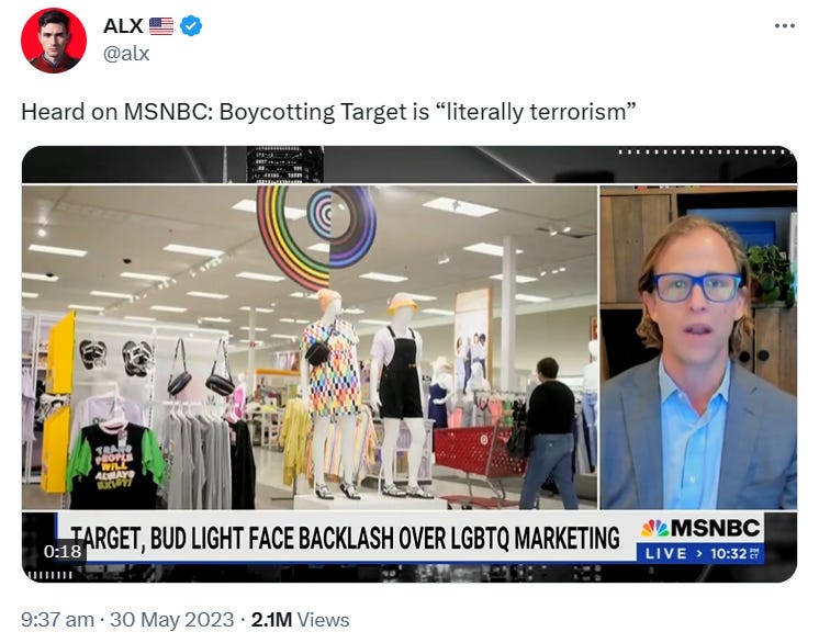 Target has gone woke for Pride Month but leave it up to Alex Stein to troll them (Link: https://twitter.com/alexstein69420/status/1661160942401470471):