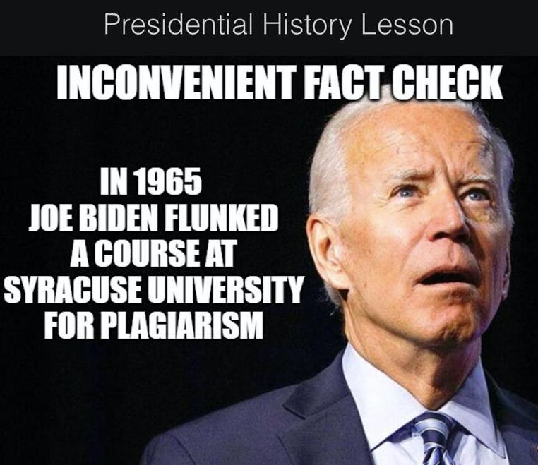 Biden started copying the work of others when he was a dumb jock in high school.