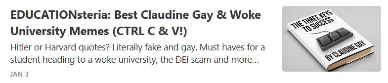 Some “free speech” is more equal than other “free speech," one thing University students can do well, more Claudine Gay & university plagiarism memes and more woke university memes!