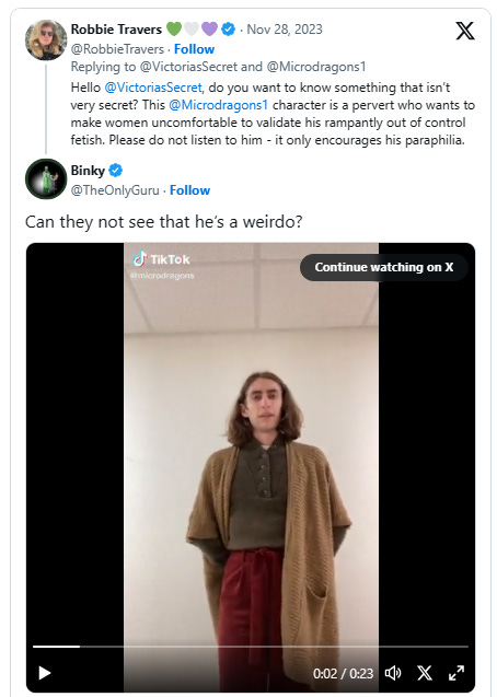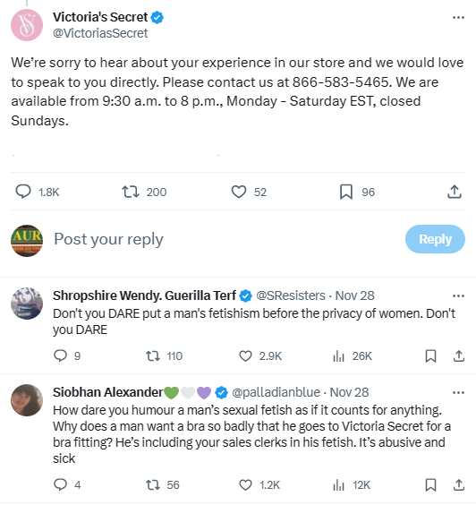 Woke Victoria’s Secret let this psycho try on bras even though this stuff infuriates biological females