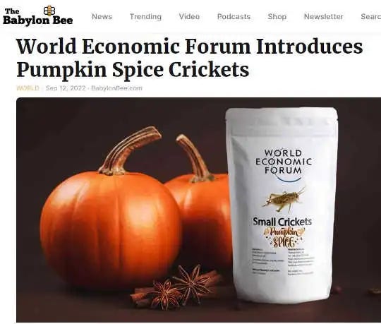 Why not a Zoom call? Pumpkin spice Soylent Green, eat at Bug King, Bug Macs, something better than ze bugs (eating the rich?) and more World Economic Forum (WEF) + Klaus Schwab memes!