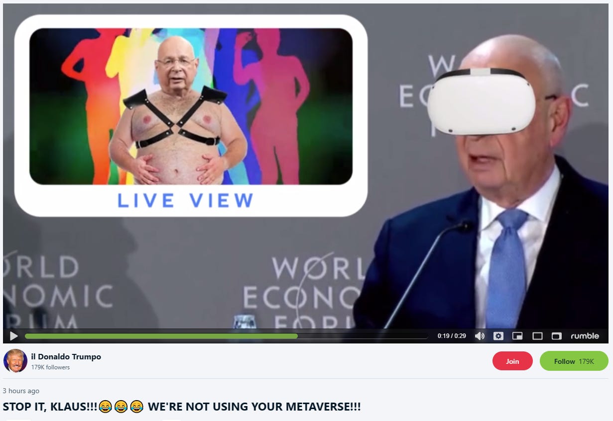 On Rumble (STOP IT, KLAUS!!!😂😂😂 WE'RE NOT USING YOUR METAVERSE!!!):
