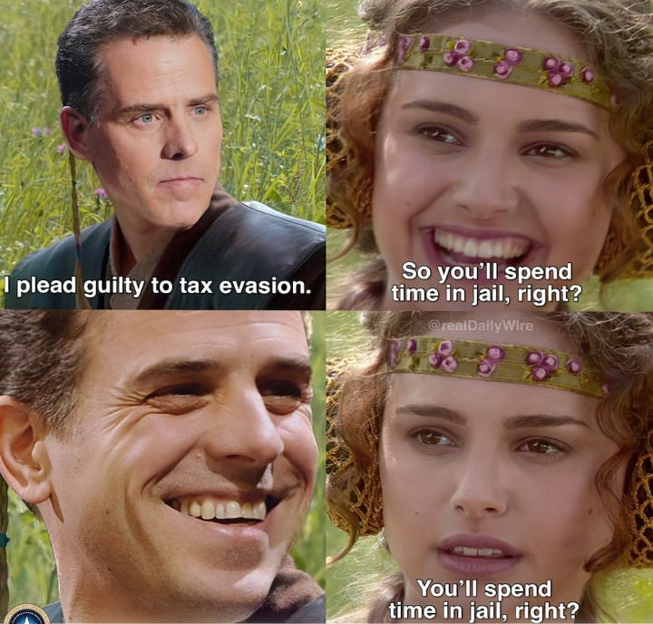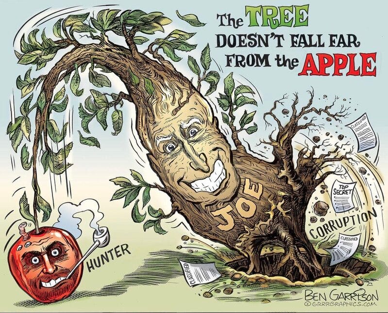 The tree doesn't fall far from the apple, Joe Biden is Hunter Biden's business, Hunter celebrates his pardon (exclusive video!), the Bill Clinton defense and more Joe & Hunter Biden corruption memes!
