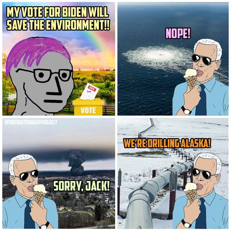Dutch Farmer Memes, Earth Day Memes, Electric Vehicle (EV) Memes, Fake Food Memes, Fake Meat Memes, Gas Stove Ban Memes, Global Warming Memes, GMO Memes, Greta Thunberg Memes & Ohio Train Derailment Memes