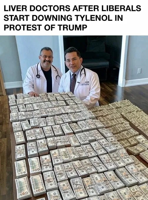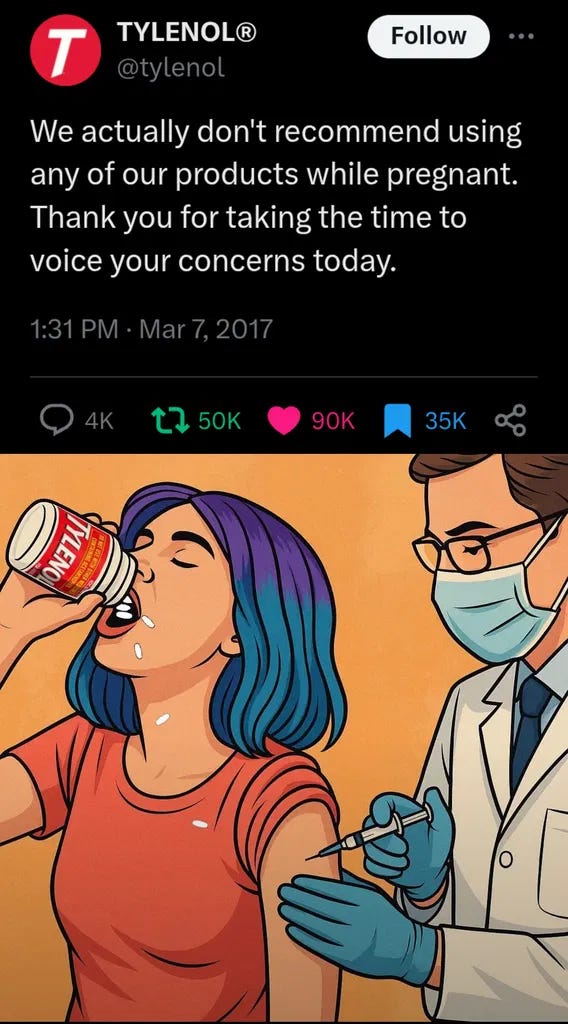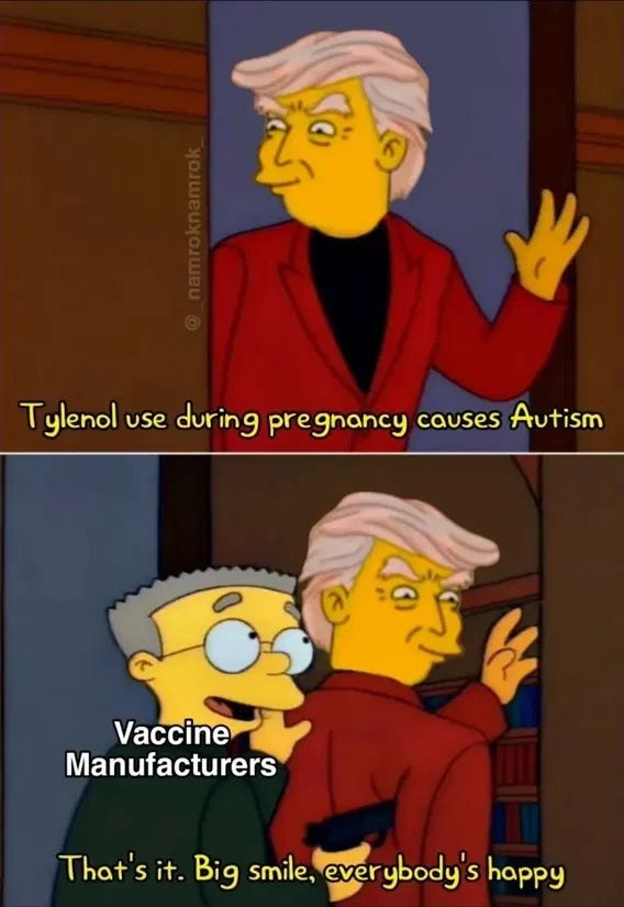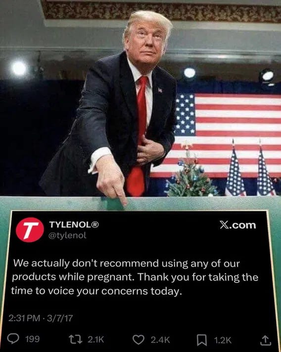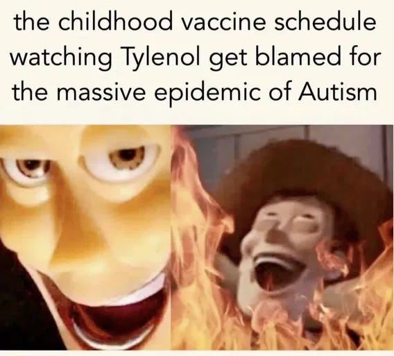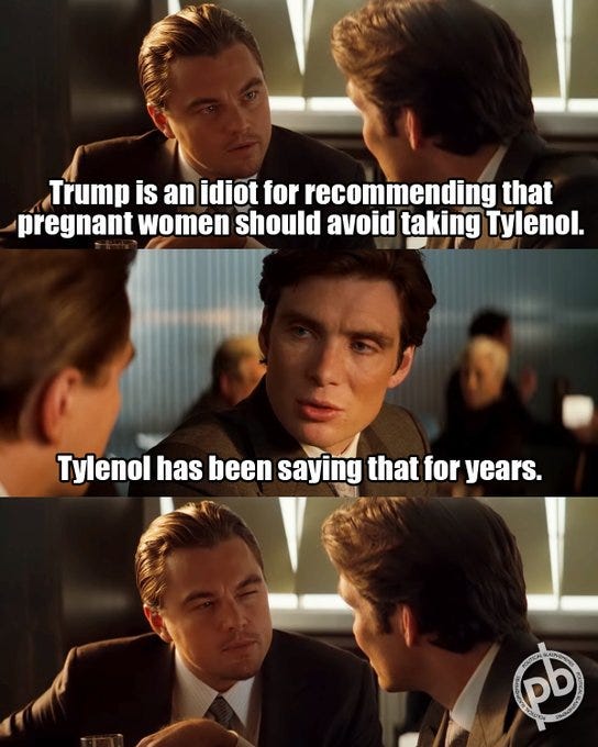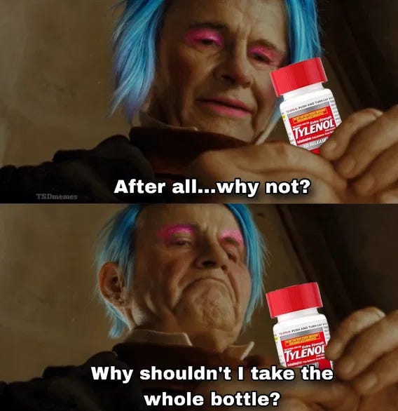 Libertards start overdosing on Tylenol, better to NOT ask mom if she took it, what about pregnant men, vaccine makers breathe easier (for now) and more Big Pharma & Tylenol causes autism memes!