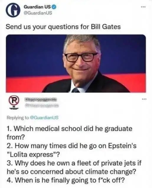 Medical expert Bill Gates tests positive for COVID (cue the standard vaccine talking point), maybe he can self isolate on Epstein's island, so many coincidences and more memes!