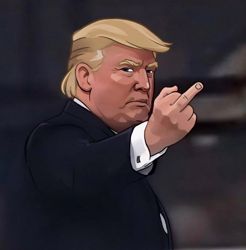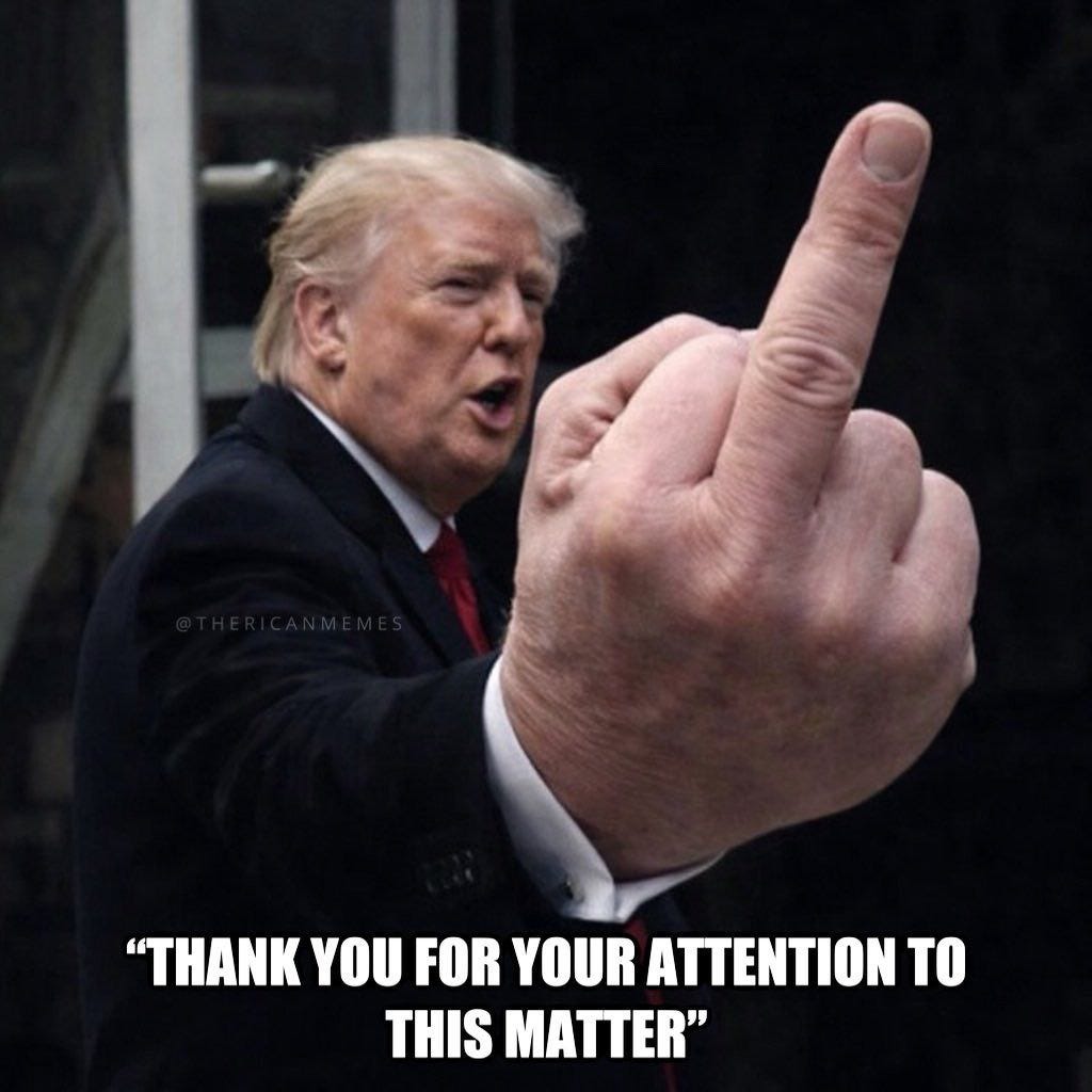 Just when you think you are out (he pulls you back in!), it was a yuge bird (and yes, I'm entertained!), the best bird ever, thank you for your attention and more Trump flips off a heckler memes!