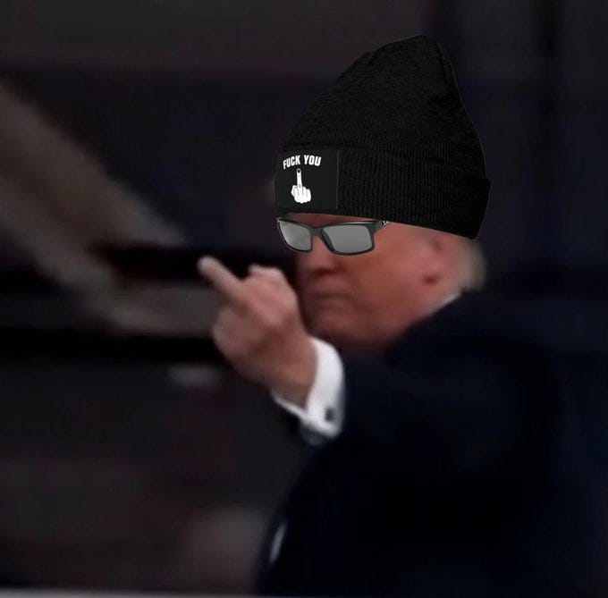 And now for some Trump flips off a heckler memes…