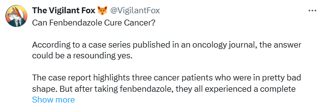 🔥 The linked tweet is very lengthy (Fenbendazole (FBZ) is a medicine originally designed to treat worms and parasites in animals):