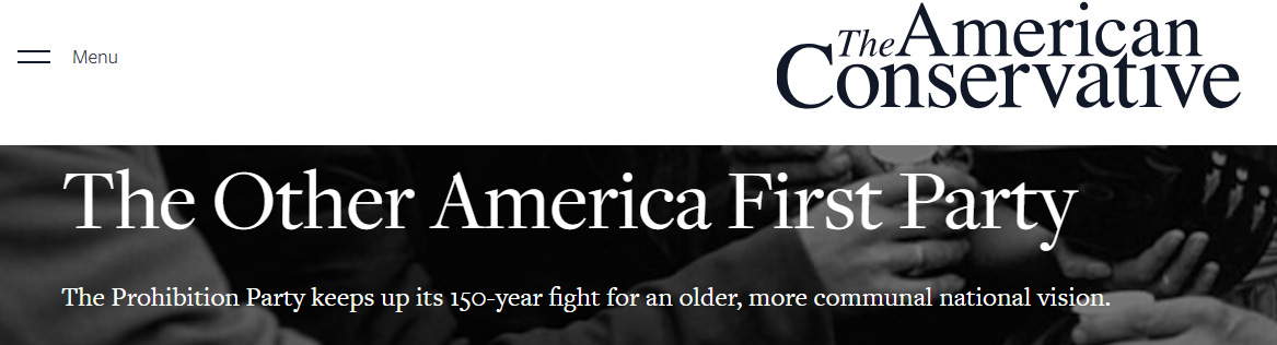 Outside the alcohol-related planks, the party’s platform has much in common with Trump-era conservatism: a strong defense of the Second Amendment; a non-interventionist foreign policy outlook; a call for infrastructure renewal; closing the border and remedying the gross abuses of asylum law. (And, as mentioned by Wood, the Prohibition Party has softened its position on abortion, much like the Trump-era GOP.)