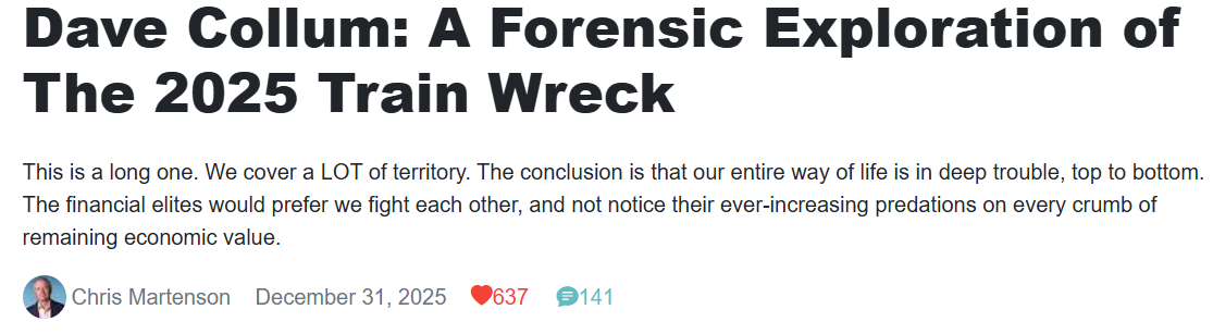 🔥 Get your fill of Dave Collum, James Kunstler, Tom Luongo, etc.: