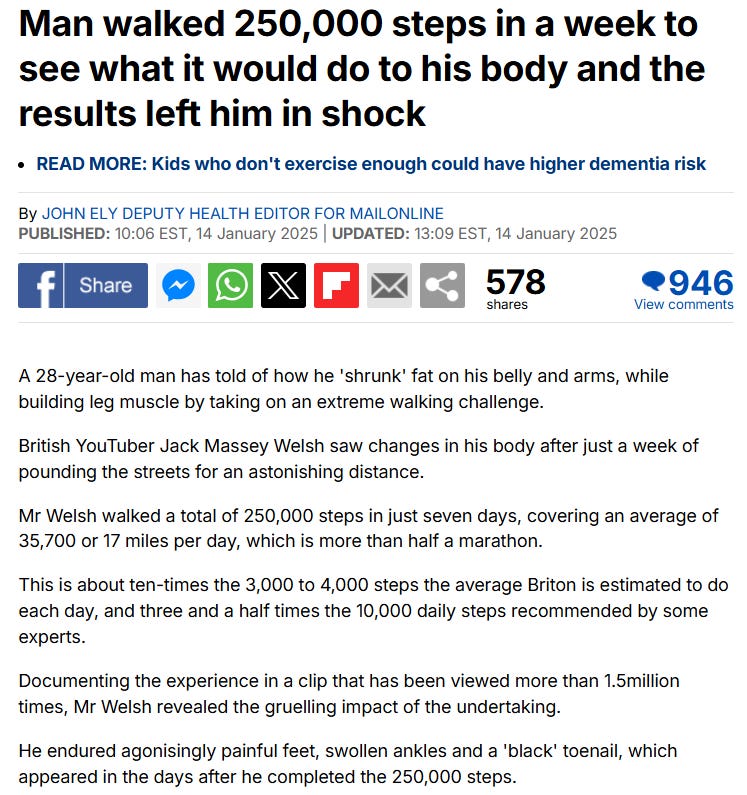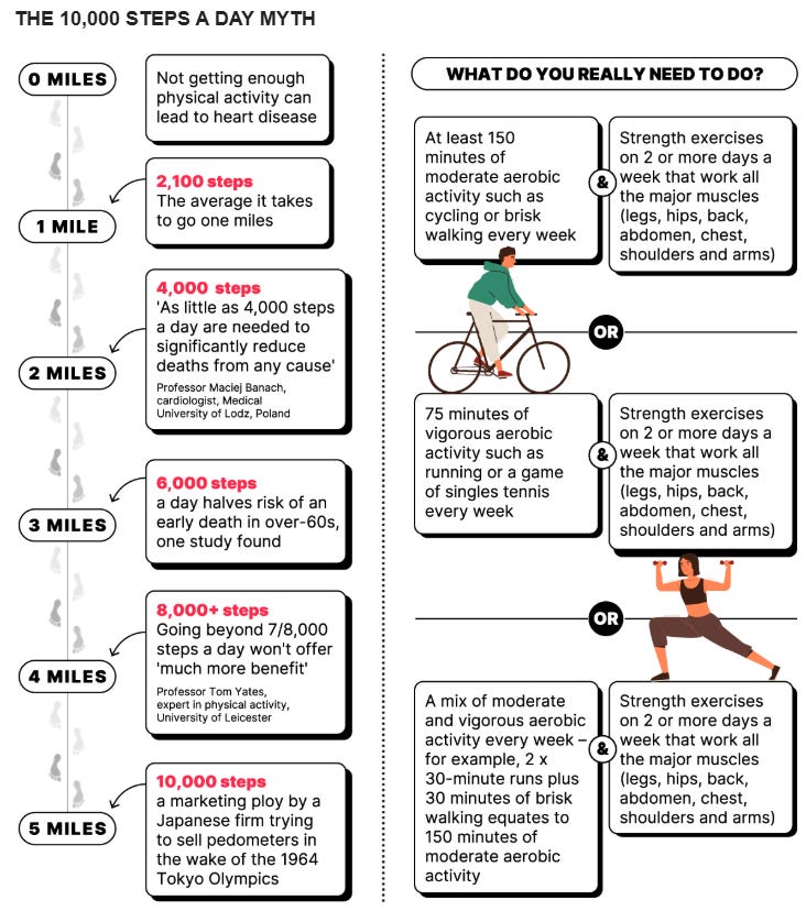 🏫 “Experts have previously told MailOnline people shouldn't get caught up on reaching a 10,000-step goal and that benefits can be seen at as little as 4,000 steps per day…”: