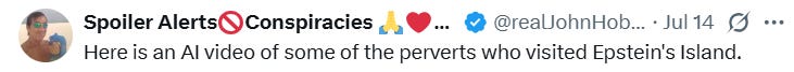 🤬 AI video of some of the perverts who visited Epstein’s Island: