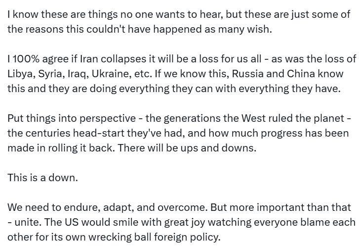🔥 This was an excellent Russians With Attitude episode that explains how the Iranians undermined Russian efforts to reform/fix Assad’s army as they feared losing influence in the country - only to regret it now as Israel can fly over Syria with impunity…: