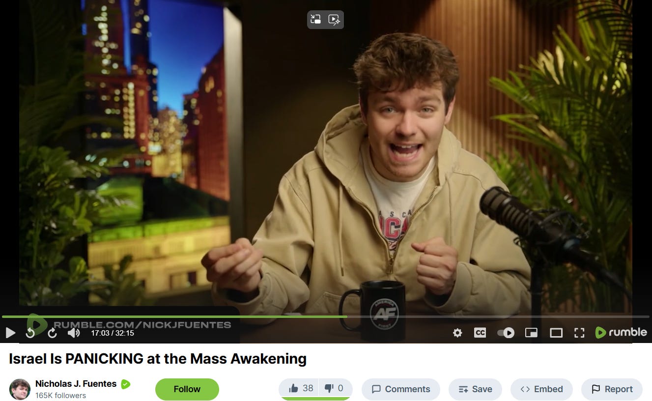 And don’t even think about listening to Nick Fuentes explain why it’s NOT Iranian or Russian bots that is making him and people like him more widely listened to: