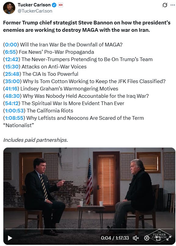 🔥 Former Trump chief strategist Steve Bannon on how the president’s enemies are working to destroy MAGA with the war on Iran: