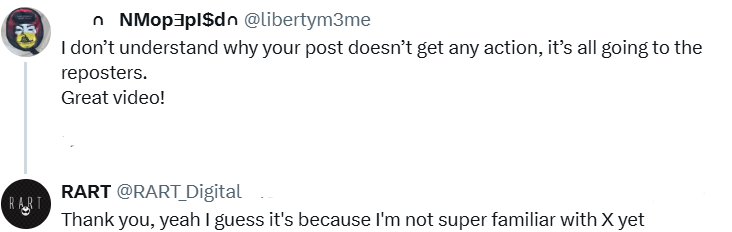 Assuming RART is not just stealing other people’s work (can never be certain these days), he or she only has a few followers on Twitter as I think they focus more posting on Instagram. IF you are on Instagram or Twitter, like or tweet out some of his work as its very good: