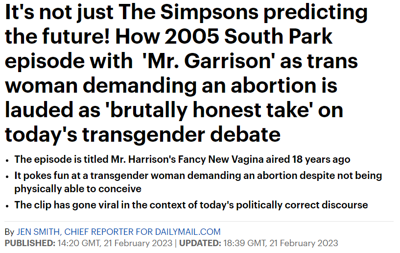 For this week’s Bread & Circuses roundup, examples of how South Park was ahead of the curve on Trans issues. Jeremy’s Chocolate takes on Her-She[y], Family Guy sums up transgenders, yes you do have to sleep with them, Muslims are on our side, another stupid racist poll like the one that got Clot Scot Adams cancelled, NY Times leaves no stone unturned in their search for racism, back when we were a serious country and did something about criminals, Chicago dumps Beetlejuice, etc. More deep (dirty old man…) thoughts from Pedo Pete Biden about his nurse (and he thinks its funny when kids die from Fentanyl)… Kamala again… Kellyann will divorce her looooosser husband (and the comments).