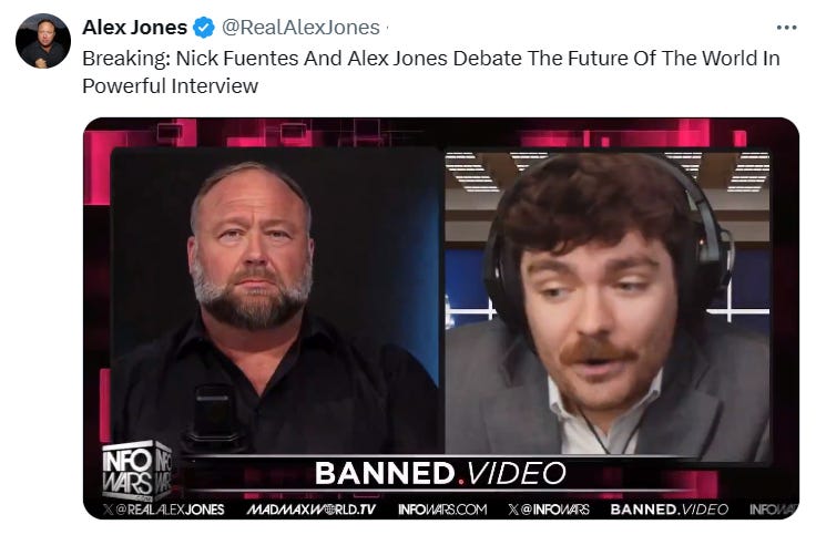 š„ Donāt even think about listening to Alex Jones talk to Nick Fuentes who is being reinstated on Twitter: