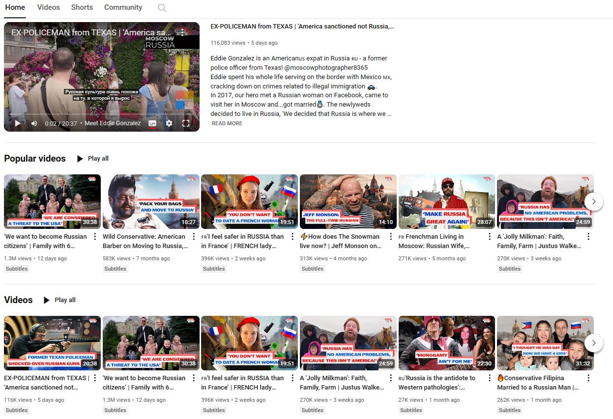 š« For a more accurate picture, this YouTube channel lets people explain in their own words why they moved to Russia (many profiled probably have their own channels):