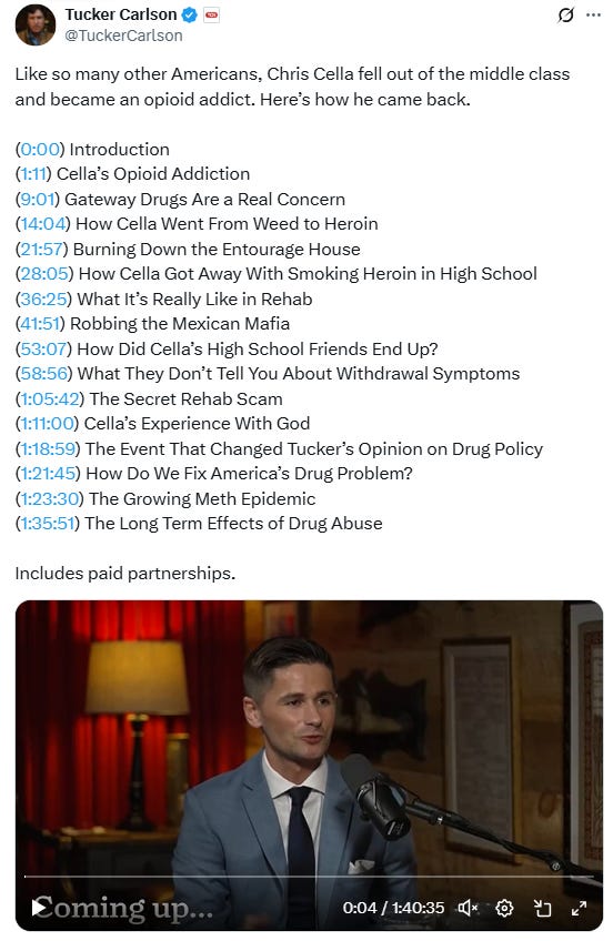 🔥 Tucker was on fire last week… IF you know anyone with an addiction problem, this was a WILD discussion that covered what a scam many treatment centers are: