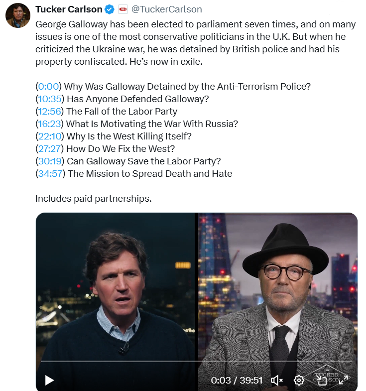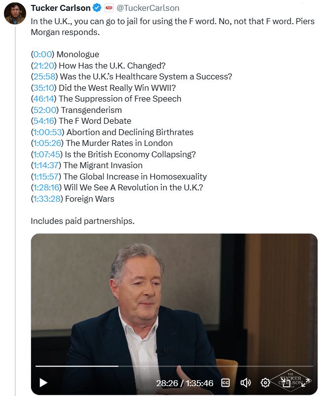 🔥 Tucker is in London - let’s hope they don’t arrest him…: