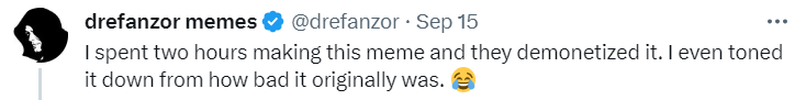 Opps, those were memes done by this joker and Twitter won’t monetize them!: