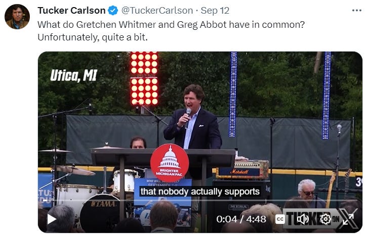 For this week’s Bread & Circuses roundup, national treasure Senator Kennedy strikes again… OTHER HIGHLIGHTS: Stock up on over-the-counter cold meds… Tucker in Argentina… Exclusive: Hunter Biden’s mugshot… Celebrating Mexican Independence Day (September 16th)… Devious Kamala... Don’t believe everything you see online… Biden drops a new version of “Poor kids are just as bright as white kids…” We already knew this about Nancy... Hire a mini-Trump for your next event or wedding party… Megan Kelly, Donald Trump is a married man... Rosie O’Donnell vs. Donald Trump flashback…