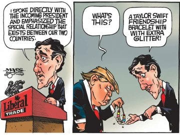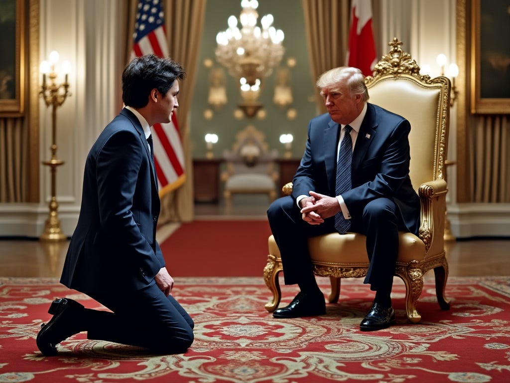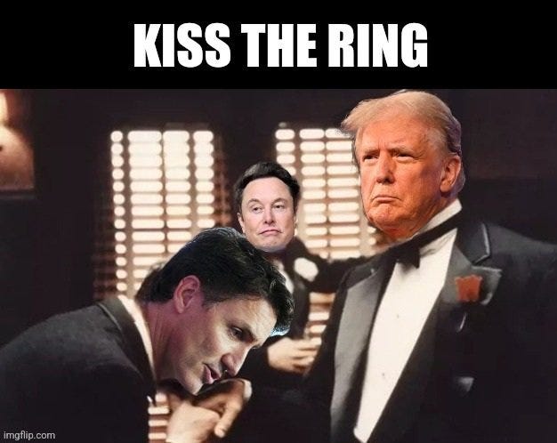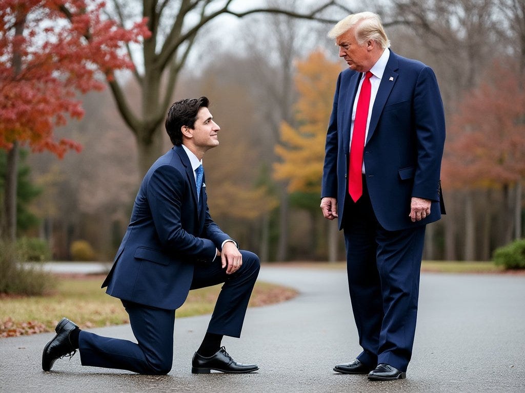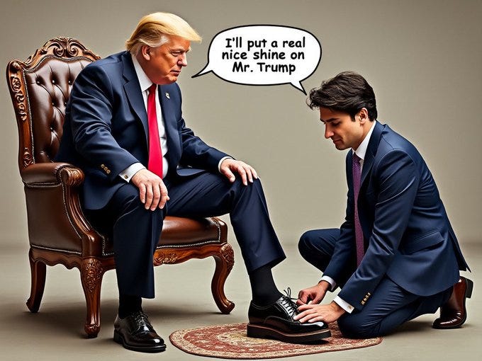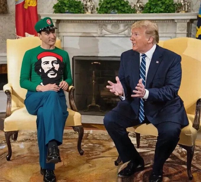 After Morning Joe and Mika, it was Fidel Justin Castro Trudeau’s turn to take the pilgrimage to Mar a Lago to bend the knee and beg for forgiveness: