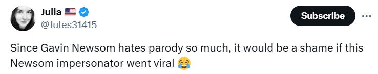 And now for some California deepfake law + AI Newsom memes…