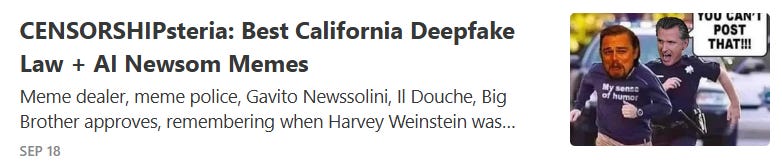 CENSORSHIPsteria: Best California Deepfake Law + AI Newsom Memes