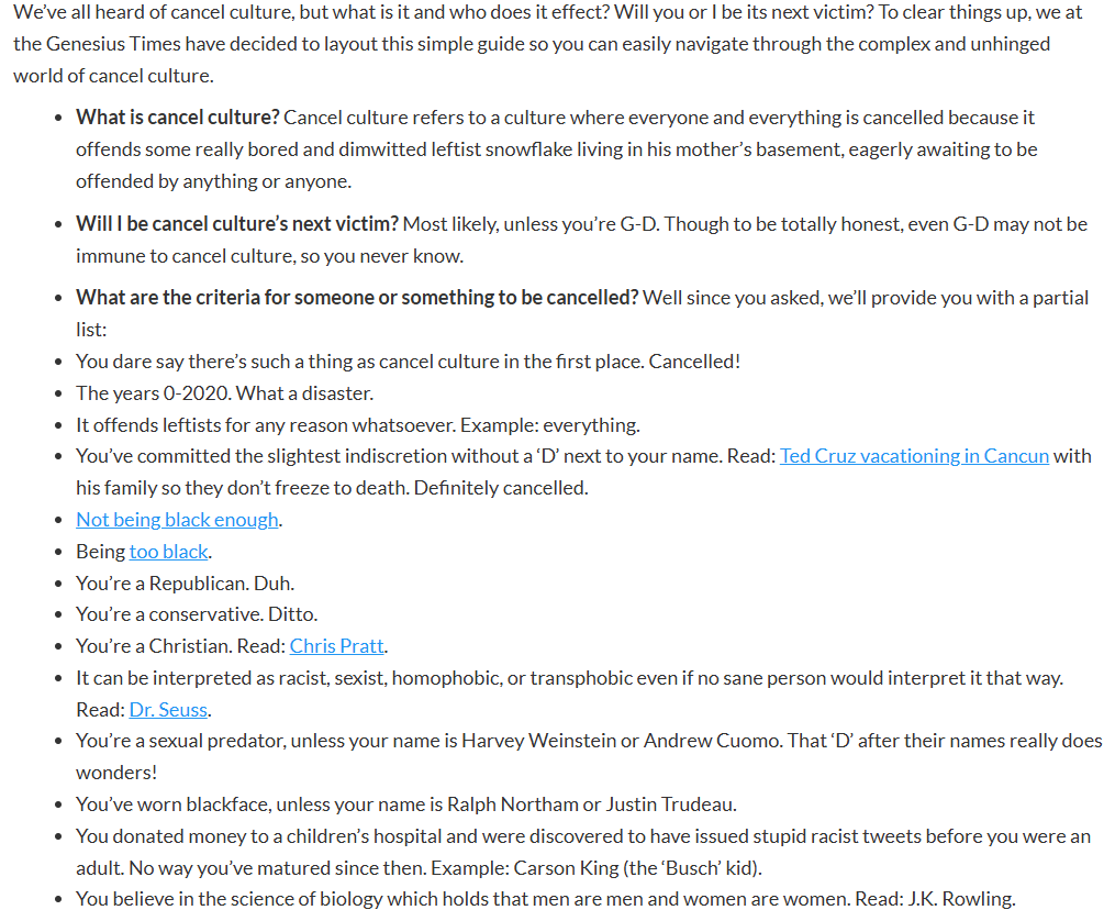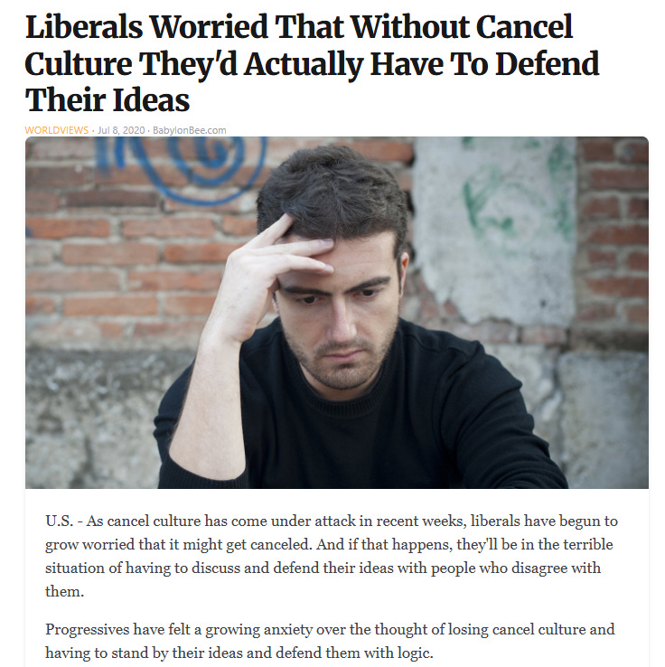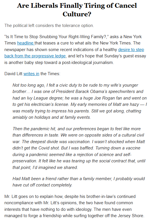 Wall Street Journal’s Best of the Web column recently asked if liberals are tired of their cancel culture or rather noted that their mouthpiece and brain, the New York Times, might be trying to steer them away from what is increasingly becoming a losing issue for them: