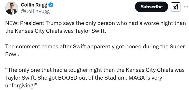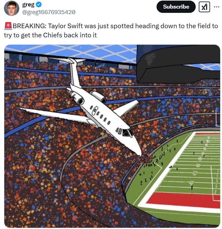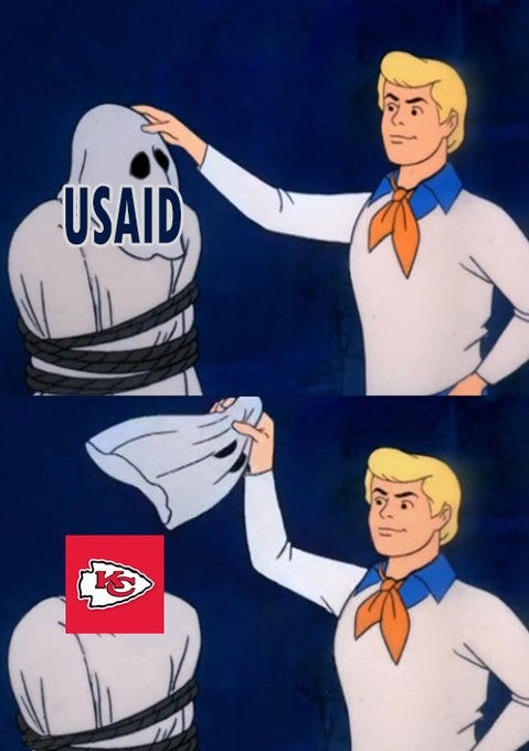 Was USAID funding the Chiefs too? A glimpse of Travis Kelce and Taylor Swift in the future, Tater Swift, you can't unsee these and more Taylor Swift gets booed at the Super Bowl memes!