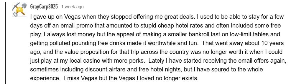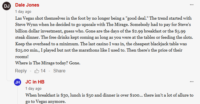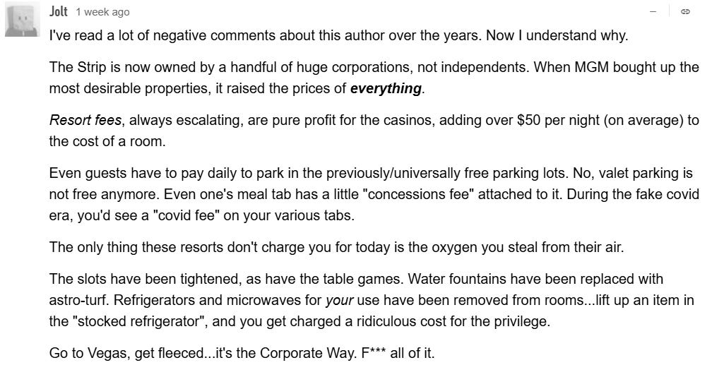 However, it’s always in the comments section where you find out the truth in that corporate Las Vegas is basically raping their customers: