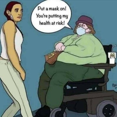 Put a mask on, you are putting my health at risk!