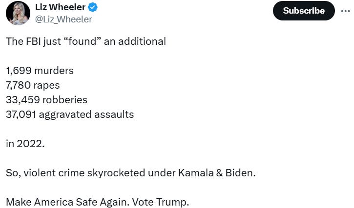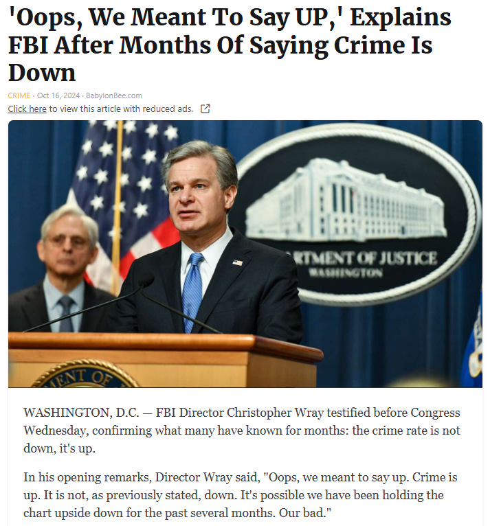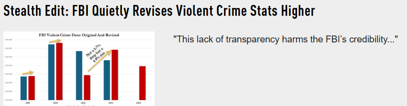 As with the unemployment numbers… and the inflation numbers… and with just about everything else, the Regime is fudging the crime numbers courtesy of the FBI: