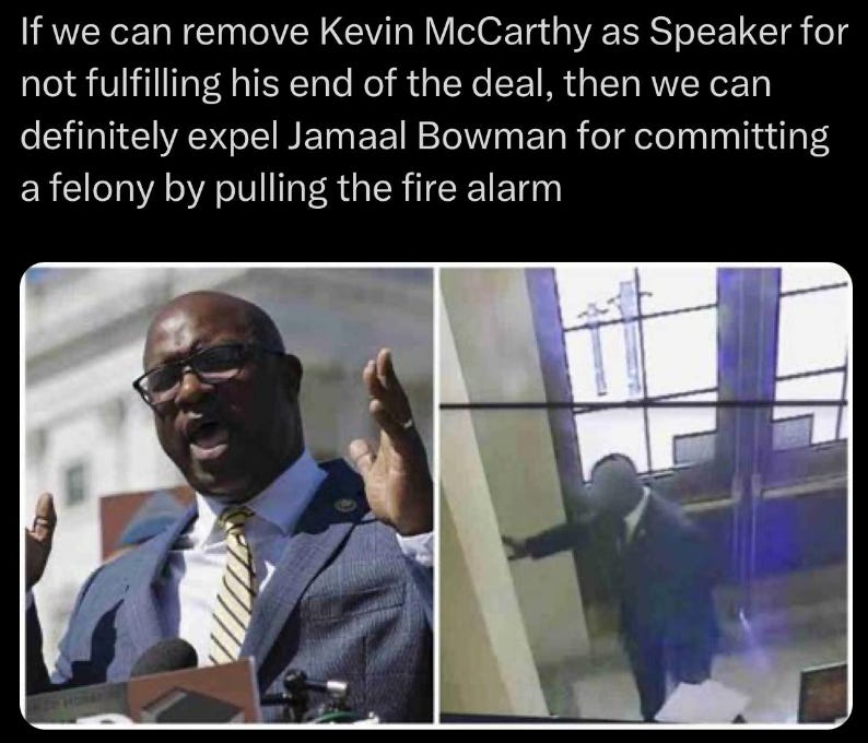 We need to clear out some old Dianne Feinstein, Jamaal Bowman pulls a fire alarm and RINO Kevin McCarthy memes…