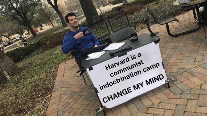 Hamas University (The Isis of the East), Mein Context (Harvard University Press), Veritas or “Truth” (w/ some exceptions), every American disaster has a Harvard man in the middle & more Harvard memes!