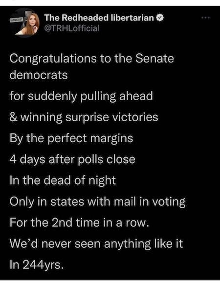 This is a tremendous collection of evidence of democratic voter fraud. Please do your country the service of sending it all in to the legal teams in courts making these arguments. So far, every single case has been thrown out of court due to lack of evidence. Some judges have even been quite scathing in their judgements, and some of those lawyers who went before them with this stuff have had their ability to practice law revoked. THEY NEED THIS EVIDENCE!
