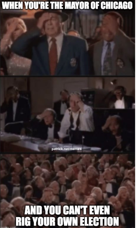 As America continues it’s deeper descent into banana republic territory, there was a hiccup in the matrix as Lori Lightfoot aka Beetlejuice failed to make it to mayoral runoff in Chicago: